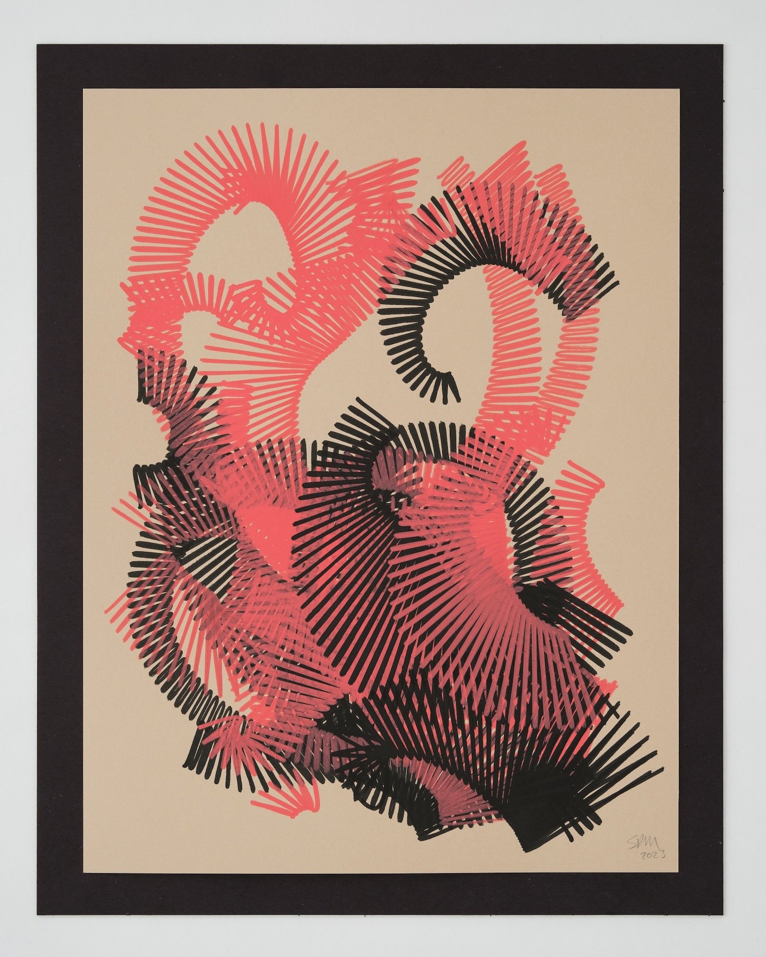“Obligate Symbionts” is a series of paintings created with a robotic pen plotter. The robot follows instructions produced by a generative algorithm that creates a unique output each time it runs. This is the twelfth painting in the series. Various acrylic paints were applied to 270 gsm acid-free paper, measuring 9.5 x 12.5 in. (24.13 x 31.75 cm). It is signed and dated on the front and shipped flat, unframed, free of charge globally via USPS.